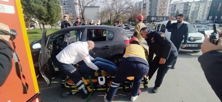 Çarpışma sonucu otomobil sürücüsü Kadriye D. aracın içinde sıkışırken diğer aracın sürücüsü de çarpmanın etkisiyle araç içerisinde yaralandı.