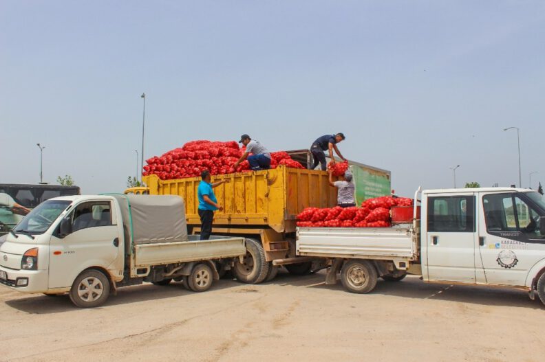 Karacabeyli çiftçi Faruk Çakır, yetiştirdiği soğanların ilk hasadını ilçede yardıma muhtaç ailelere ulaştırması için Karacabey Belediyesi’ne verdi. Karacabey Belediyesi ekipleri de yaklaşık 100 tonluk soğanı tarladan sararak, Sosyal Yardım İşleri Müdürlüğü’nün tespit ettiği dar gelirli ailelere kısa sürede ulaştırdı.