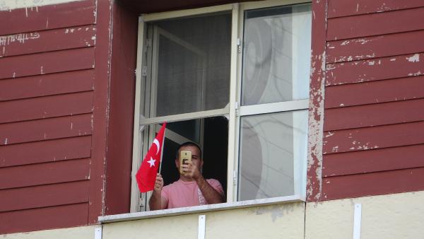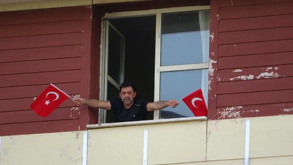Mustafa SUİÇMEZ-Cemhan ŞEN/ÇANAKKALE, (DHA)- ÇANAKKALE Onsekiz Mart Üniversitesi (ÇOMÜ) Terzioğlu Yerleşkesi’ndeki Gençlik ve Spor İl Müdürlüğü’ne bağlı Çanakkale Kız Yurdunda karantinada kalan 98 vatandaş, 19 Mayıs Atatürk’ü Anma, Gençlik ve Spor Bayramı nedeniyle ellerinde Türk bayraklarıyla yurdun pencerelerinden, hep bir ağızdan İstiklal Marşı okudu.