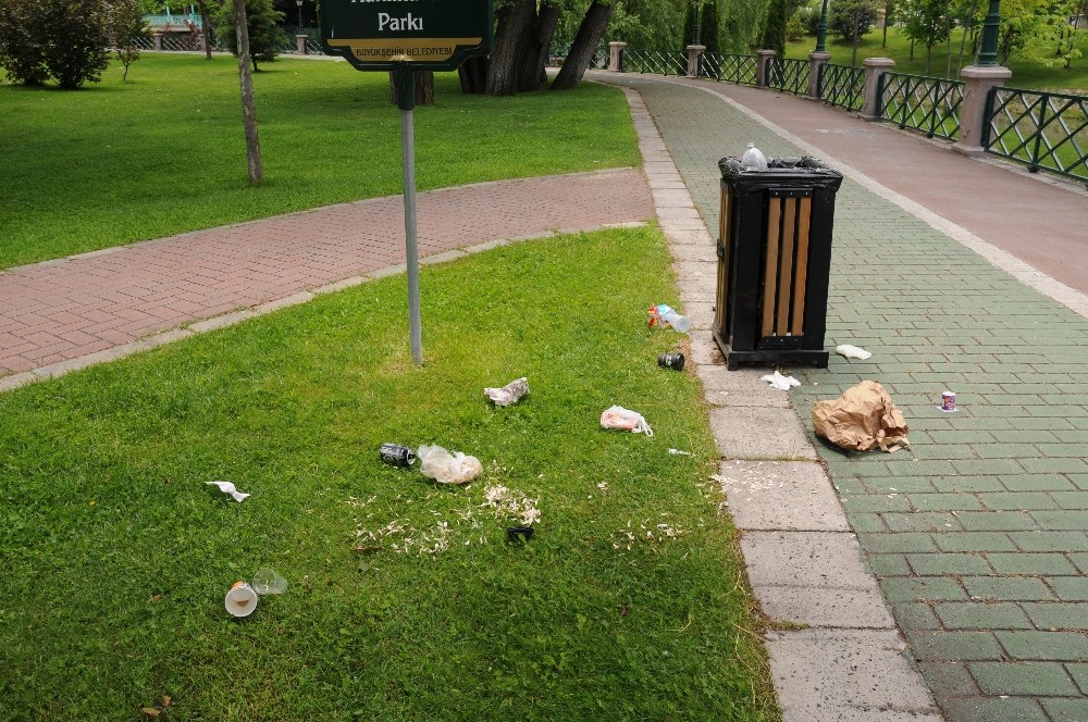 Sokağa çıkma kısıtlaması bulunan Eskişehir’de bazı parklarda çevreye yayılan çöpler dikkat çekti.