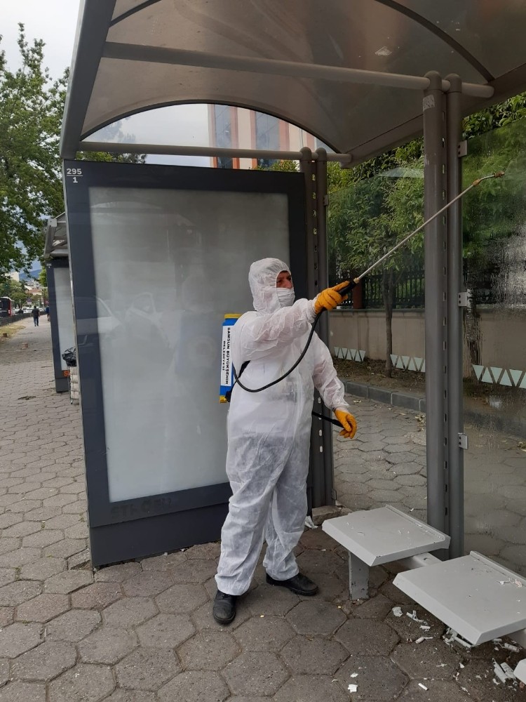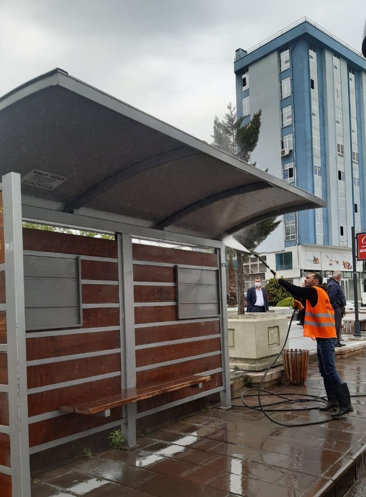 Haftanın ilk gününde vatandaşların yoğun olarak kullanacağı otobüs duraklarının belirli periyotlarla temizliğinin yapılmaya devam edeceği ifade edildi.