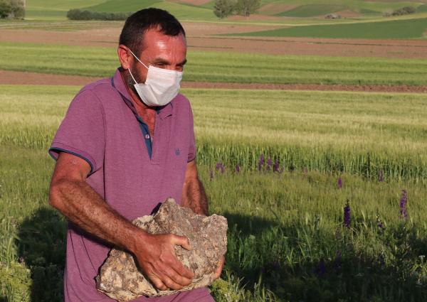 Çorum’un Alaca ilçesinde çiftçi Mutlu Yılmaz, geçen yıl Nisan ayında nohut ektiği sırada tarlasında bulduğu 68 kiloluk gök taşına gözü gibi bakıyor. Yılmaz, dünya literatürüne ‘Gerdekkaya’ ismiyle giren Türkiye’nin en büyük üçüncü gök taşını, değeri verildiğinde satmak istiyor.