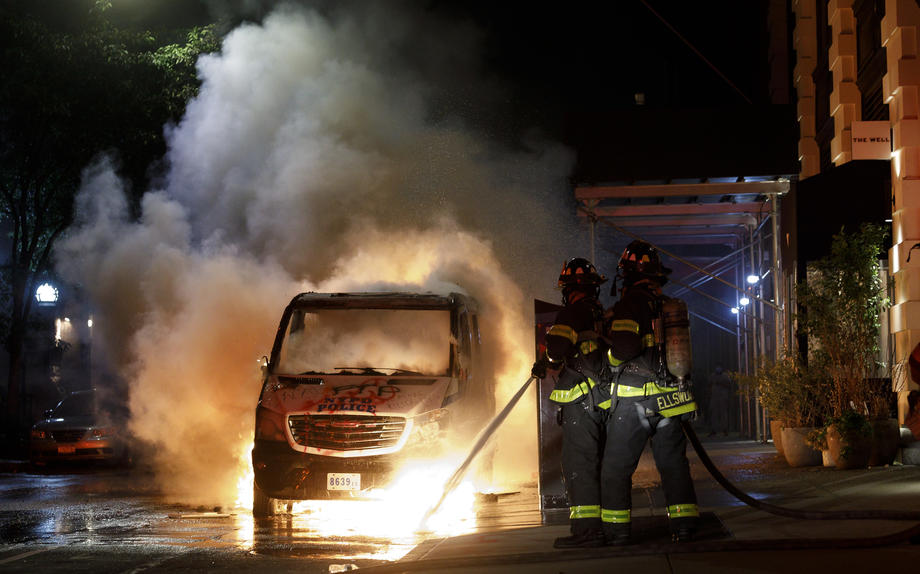 Portland kentinde süren şiddet ve yağmalara karşı olağanüstü hal ve sokağa çıkma yasağının ardından asker sokağa indi. Pennsylvania eyaletinin Harrisburg ve Philadelphia kentinde protestolar, gece boyunca devam etti. Philadelphia kentinde iş yerleri ateşe verilirken, Chesnut Bulvarı üzerinde bulunan bazı bankanın camları kırıldı. Philadelphia Belediye Başkanı Jim Kenney, sokağa çıkma yasağı ilan edildiğini duyurdu. Şiddet ve yağlama olayları devam ederken, göstericiler eyaletler arası I-95 otoyolunu saatlerce trafiğe kapattı. Yaklaşık 3 bin kişi ile başlayan gösterilerin şiddete dönüşmesi sonucu en az 4 polis aracı yakıldı, 13 polis de yaralandı. Polis tarafından yapılan açıklamada, gösterilerde en az 14 kişinin gözaltına alındığı kaydedildi.