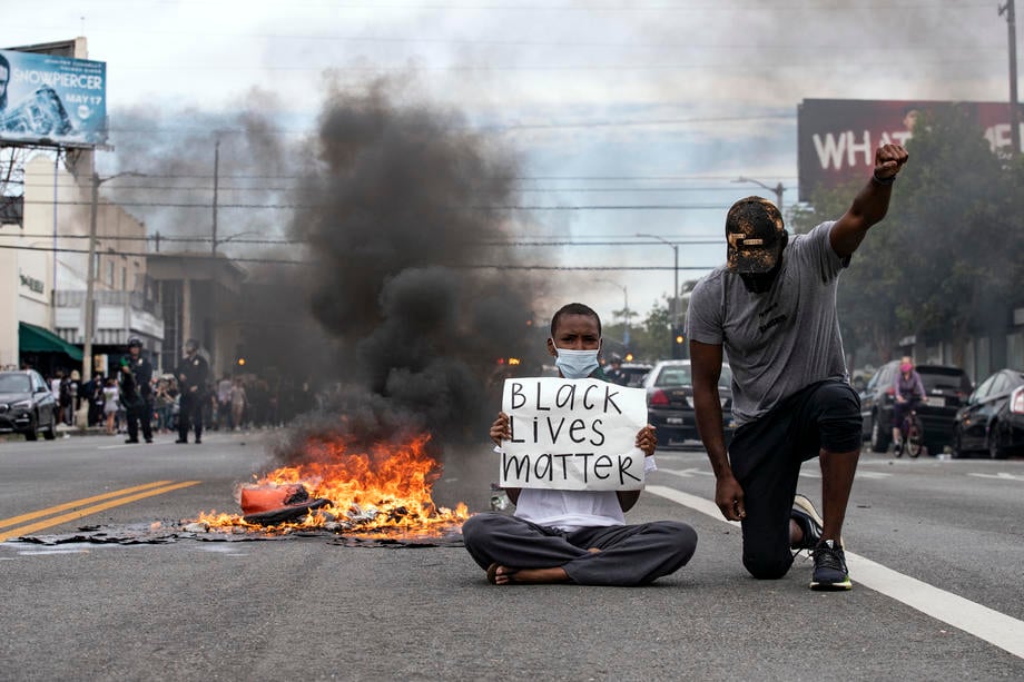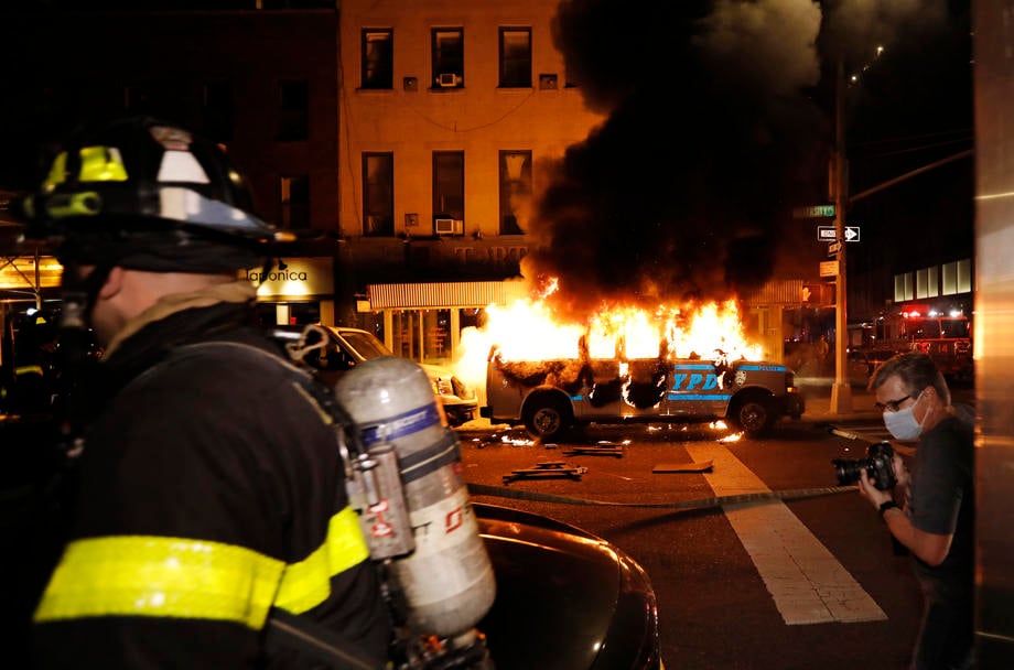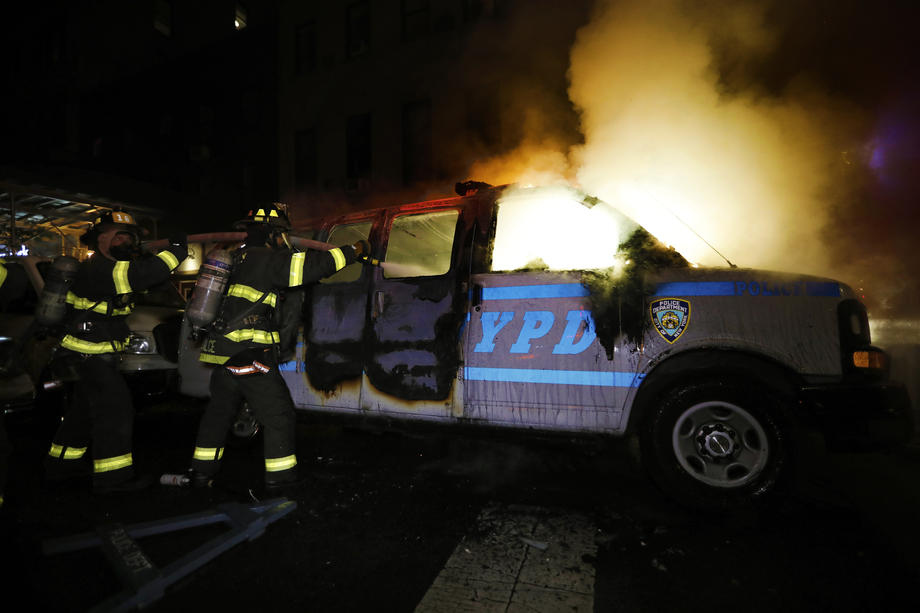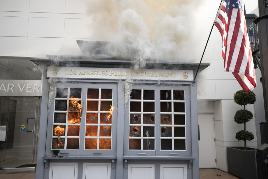 Los Angeles’taki gösterilerde, banka ve iş yerleri ateşe verildi. 30’dan fazla polis aracının yakıldığı ve kullanılamaz hale geldiği bildirildi.