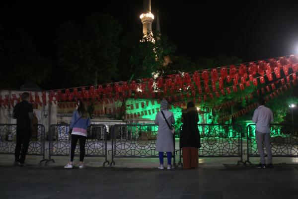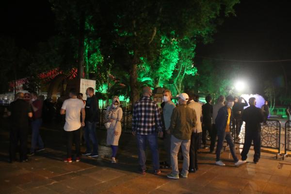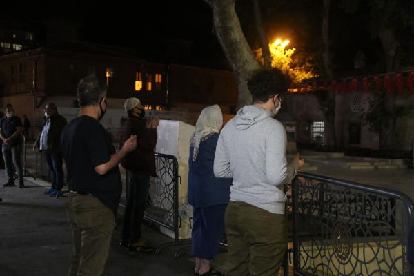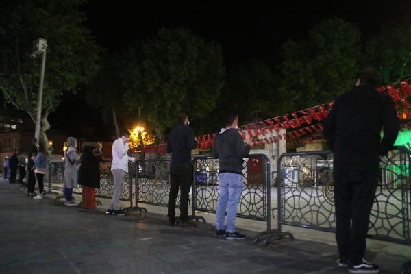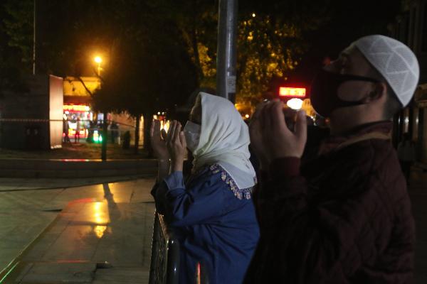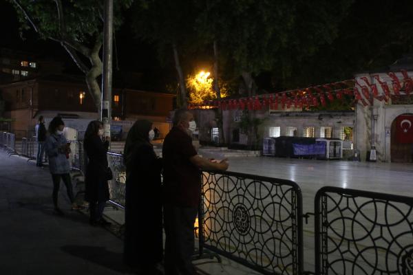 Murat DELİKLİTAŞ-Anıl UÇAN/İSTANBUL,(DHA)- KORONAVİRÜS tedbirleri kapsamında 15 ilde uygulanan 4 günlük sokağa çıkma yasağı sona ermesinin ardından, Kadir Gecesi nedeniyle Eyüpsultan Camii’ne gelen vatandaşlar içeri alınmayınca bariyerlerin arkasından dua etti.