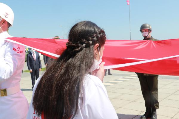 Alper, “Koronavirüs dolayısıyla hepimizin evde kalması lazım. İşte o yüzden ben de balkondan sizlere sesleniyorum. Hepimiz lütfen bütün milletim sağlıklı olabilmesi için evde kalsın. Maskelerini kullansınlar. İnsanlara 1 buçuk 2 metre aralıklarla yaklaşın. Çünkü bu virüsü hepimiz azimle, kurallara uyarak yeneceğiz. Sizleri tekrar kutluyorum. 19 Mayıs Bayramımız kutlu olsun.” dedi.
