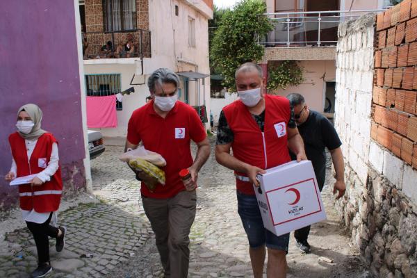 Türk Kızılayı İzmir Şube Başkanı Kerem Baykalmış, “Burası Roman kardeşlerimizin yoğun yaşadığı bir bölge. Özellikle ihtiyaç sahibi insanlara Türk Kızılayı olarak günlük maişetlerini karşılayabilecekleri gıda kolileriyle destek vermeye çalıştık. Bugün bu mahallede doğup, büyüyen Hüsnü Şenlendirici beyefendi de bizlerle beraber. Çok sağ olsun. Kendisi de desteklerini esirgemedi. Hanelere hem selamlarımızı iletti hem de yapmış olduğumuz yardımda bizlere destek verdi” diye konuştu.