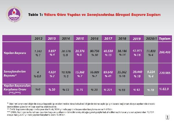AYM, güncellenmiş bireysel başvuru istatistiklerini internet sitesinden paylaştı. Bireysel başvuruların başladığı tarih olan 23 Eylül 2012’den 31 Mart 2020 tarihine kadar yapılan bireysel başvuru sayısı 266 bin 466’ya ulaştı. Bunun 220 bin 958’i sonuçlandırıldı. Ayrıca, 2020 yılın ilk üç ayında 11 bin 830 bireysel başvuru yapılırken, bunun 9 bin 224’ü sonuçlandırıldı. AYM’nin 2020’nin ilk üç aylık döneminde başvuruları karşılama oranı yüzde 78 olarak gerçekleşti.