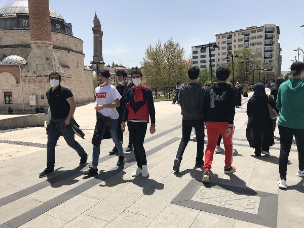 Uğur YİĞİT- Mert Taha VAROL/SİVAS, (DHA)- SİVAS’ta koronavirüs nedeniyle sokağa çıkmaları kısıtlanan 15-20 yaş arası gençler, bugün verilen izinde güzel havayı da fırsat bilerek cadde ve sokaklara akın etti.