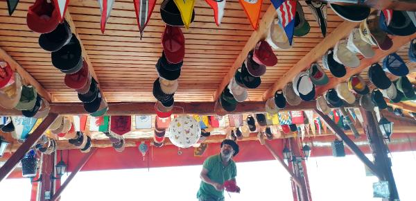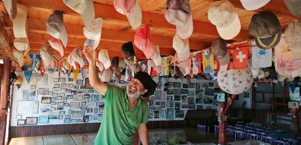 “Gelirken bize hediyeler getiriyorlardı, bu tişört olurdu, şapka olurdu. Güzel deniz ürünleri yapıyorduk, müşteriler de şapka hediye etmeye başladı. Biz de bu şapkaları ne yapalım, tavana asalım dedik. Güzel bir dekorasyon oldu. Günden güne büyüdü, şu an 800 ile 1000 arası tavanda asılı. Her gelen bir seremoni yapıyordu. Bizim için de gurur kaynağı oldu. Hedefimiz, olmazsa olmazımız gelen müşterilerin güler yüzle gitmeleri.”