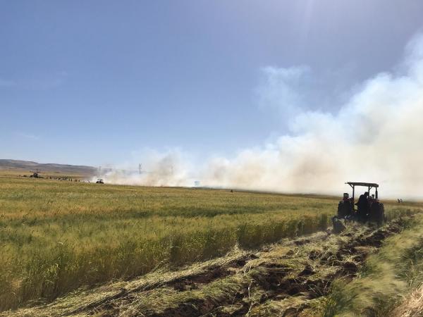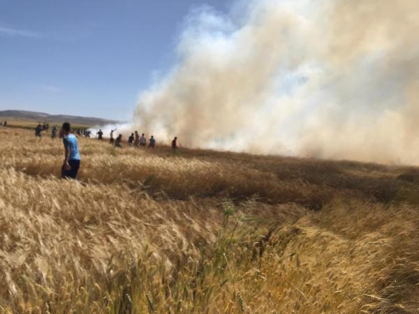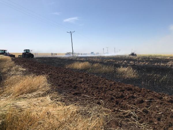 İlçeye bağlı kırsal Höyüklü Mahallesi’nde, iddiaya göre, elektrik tellerinden sıçrayan kıvılcımlarla buğday ekili alanda yangın çıktı. Alevleri gören mahalleli, traktörlerle gidip, müdahaleye başlarken, itfaiyeye de haber verdi. Yangın, rüzgarın da etkisiyle kısa sürede büyürken, ihbarla gelen itfaiye ekiplerince kontrol altına alınıp, söndürüldü. Yangının ardından yapılan incelemede, 30 dönümlük ekili alanın küle döndüğü belirlendi.