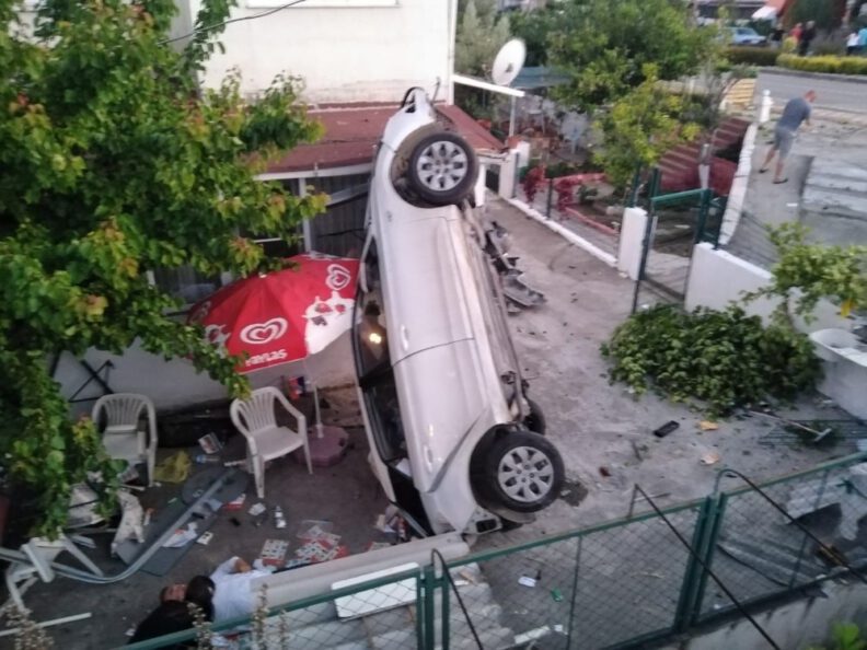 Balıkesir’in Edremit ilçesinde kamyonetin çarptığı otomobil bir evin bahçesine uçtu. Kazada 2 kişi hayatını kaybetti, 3 kişi yaralandı.