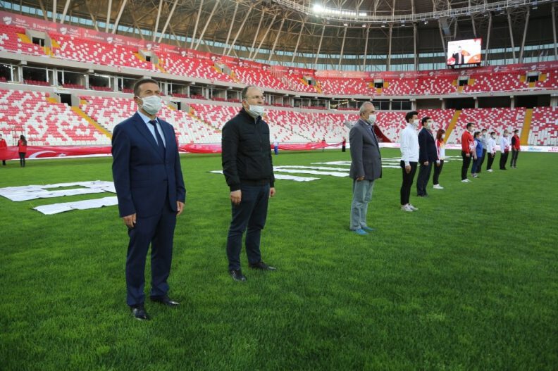 Onur ATIŞ – Ergin KARATAŞ – Tekin GÜRBULAK / İZMİR (DHA) – Koronavirüs salgınında Türkiye’nin tüm kentlerinde olduğu gibi İzmir’de de 19 Mayıs Atatürk’ü Anma, Gençlik ve Spor Bayramı statlarda İstiklal Marşı okunarak kutlandı. Süper Lig ekiplerinden Göztepe’nin bu sezon açılışını yaptığı Gürsel Aksel Stadı’ndaki organizasyonua İzmir’in olimpik sporcuları katıldı. Stada 7 branştan, 26 sporcu gelirken, saatler 19.19’u gösterdiğinde İstiklal Marşı hep bir ağızdan coşkuyla okundu. Sporcular sahanın ortasında dev Türk bayrağı ve Türkiye Cumhuriyeti’nin kurucusu Mustafa Kemal Atatürk posterini açtı. İstiklal Marşı’nın okunmasının ardından stadyumda ışık gösterileri yapıldı, İzmir Marşı çalındı. İzmir’de Gürsel Aksel Stadı’nın yanı sıra Atatürk Stadı, Bornova Stadı ve Halkapınar Spor Salonu’nda da İstiklal Marşı okundu. Sporcular etkinlikte sosyal mesafe kuralına uyarak maskelerini taktı. Vatandaşlar da İstiklal Marşı’na evlerinin balkonlarından eşlik etti.