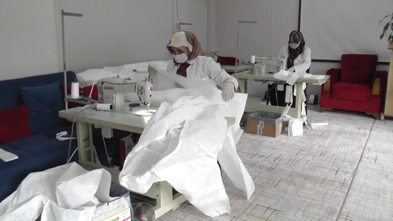 Van’ın Erciş Kaymakamlığı tarafından korona virüs sürecinde günlük bin 500 adet maske ve 20 adet tulum üretiliyor.