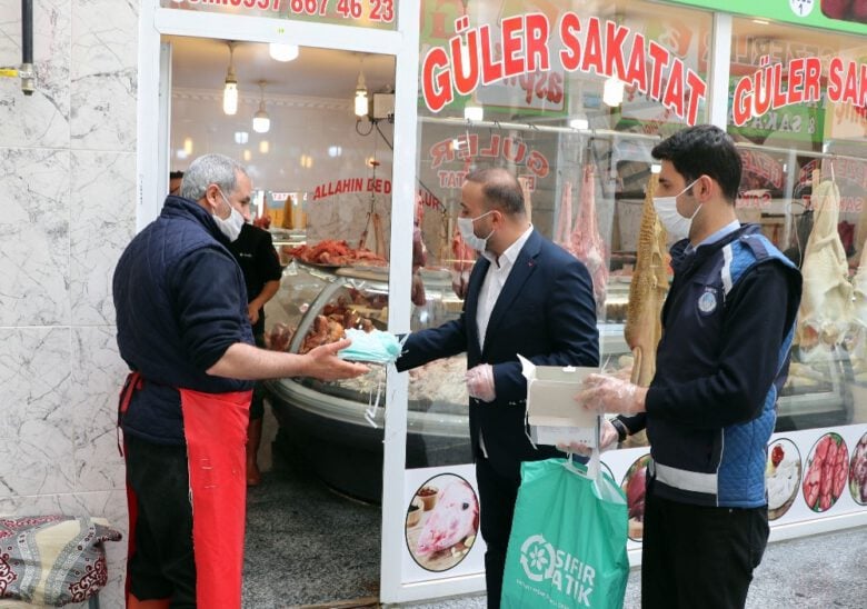 Van Büyükşehir Belediyesinden sakatatçı esnafına maske