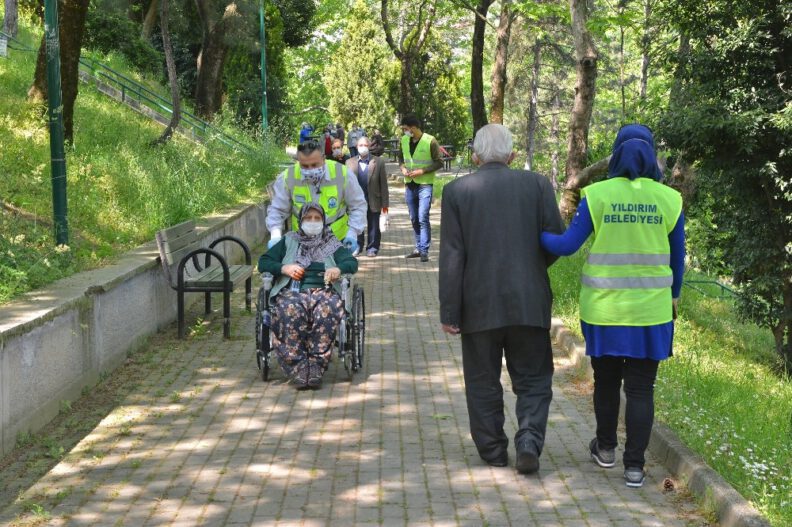 22 Mart’tan bu yana sokağa çıkmaları kısıtlanan 65 yaş ve üzeri vatandaşlara aralıksız destek veren Yıldırım Belediyesi, normalleşme sürecinin başlamasıyla birlikte geçici süreyle sokağa çıkabilen ilçe sakinlerine dışarıda geçirdikleri süre boyunca refakat etti. Geride kalan 44 günlük kısıtlama süresi boyunca, sıcak yemekten erzak desteğine, ekmek ulaştırma hizmetinden emekli maaşı çekme, fatura ödeme gibi resmi işlemlere kadar birçok alanda ilçe büyüklerinin yanında olan Yıldırım Belediyesi, Vefa Sosyal Destek Grubu ekipleriyle, 10 Mayıs 11.00-15.00 saatleri arasında evlerine yakın noktalarda yürüyüş yapan yaşlılara refakat ederek ulaşımlarını sağladı.