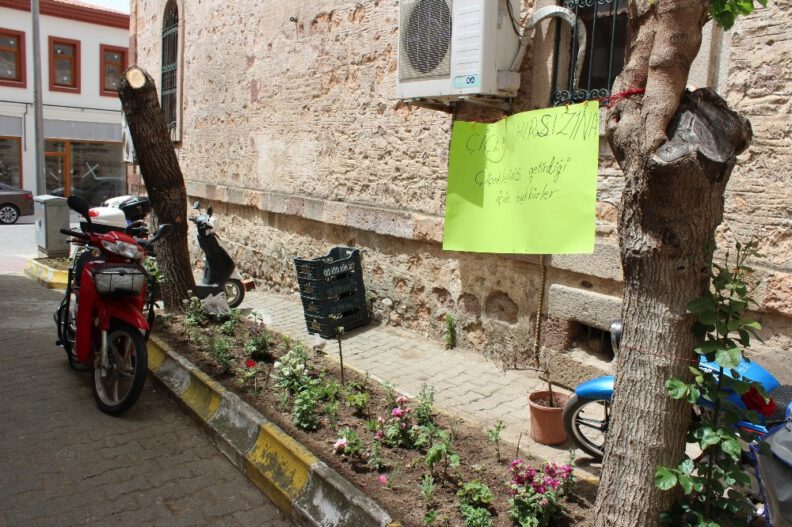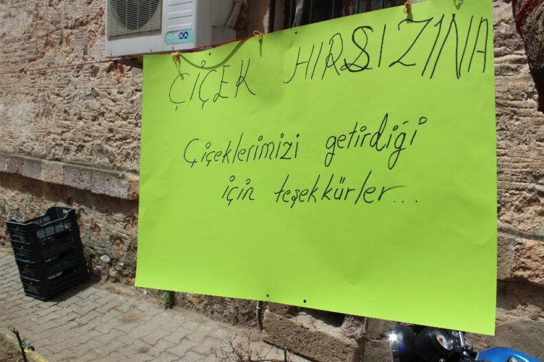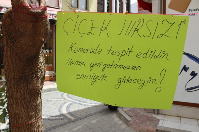 Atatürk Caddesi Lonca Sokak üzerinde bir esnafın çiçek hırsızıyla diyaloğu ilgi çekti. Esnaf, işyerinin önünde bulunan çiçekleri alan hırsıza hitaben hazırladığı afişe, “Çiçek hırsızı, kamerada tespit edildin. Hemen geri getirmezsen emniyete gideceğim” mesajı yazdı. Mesajı okuduğu anlaşılan hırsın gece çaldığı çiçekleri geri getirmiş olduğunu gören işyeri sahibi, ikinci mesajla hırsıza “Çiçek hırsızına çiçeklerimizi getirdiği için teşekkürler” mesajı yazdı.