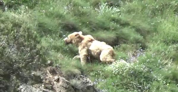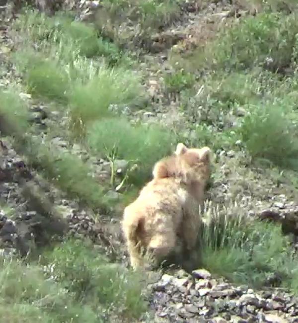 Aynı bölgede vatandaşlar bu kez tek başına Çoruh nehrinde su içtikten sonra ot yiyen ayının görüntülerini çekmeyi başardı. Sakin bir şekilde arazide gezen ayı dağa tırmanarak gözden uzaklaştı.