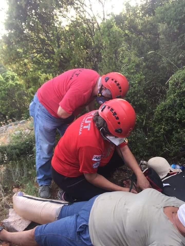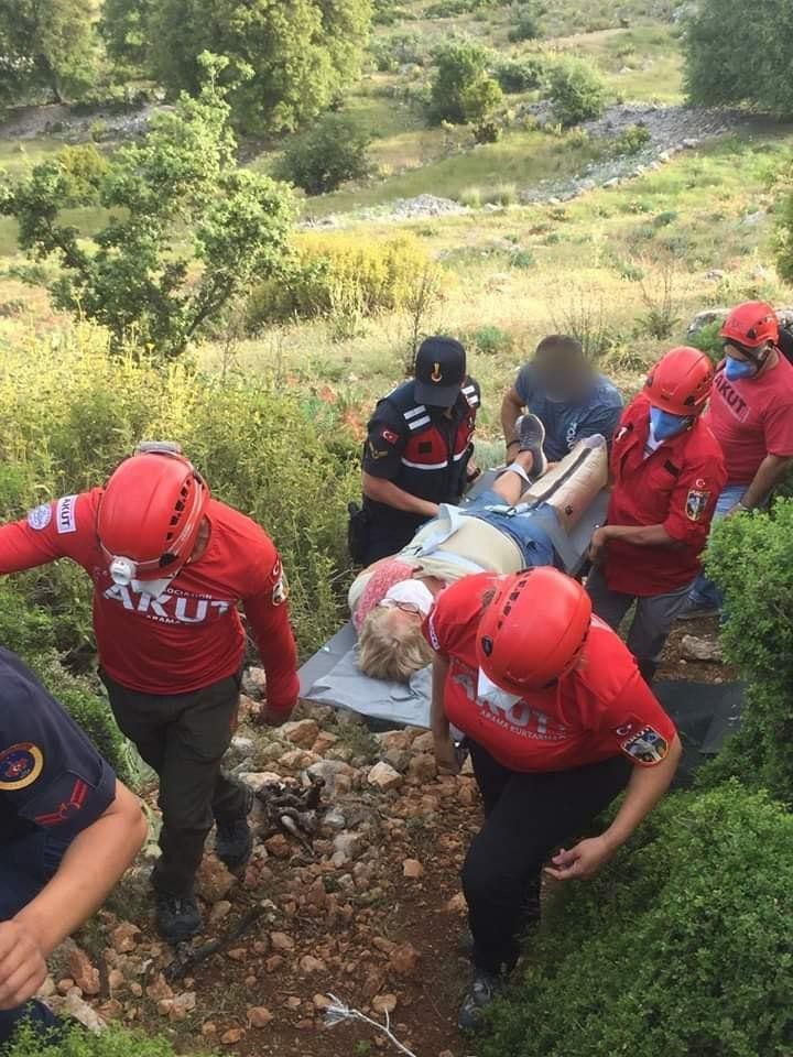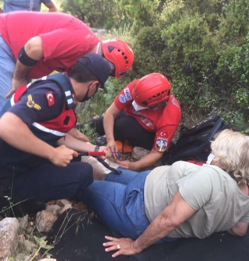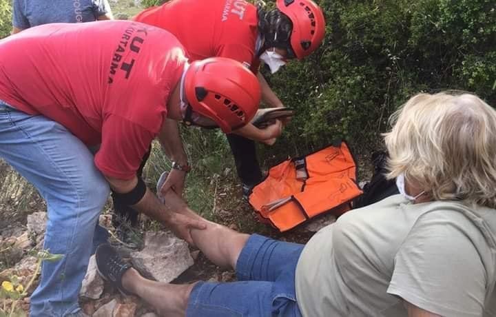 Yurt dışında yaşayan ve Antalya’nın Kaş ilçesi Sarıbelen Mahallesine arazi bakmak için gelen Nurdan Torun ve oğlu Kaan Torun, dün 4×4 arazi aracıyla Göksarnıç mevkisine çıktı. Araçtan inen Nurdan Torun’un yürürken ayağı burkuldu. Oğlu Kaan Torun, 112 Acil Çağrı Merkezi’ni arayıp, yardım istedi.