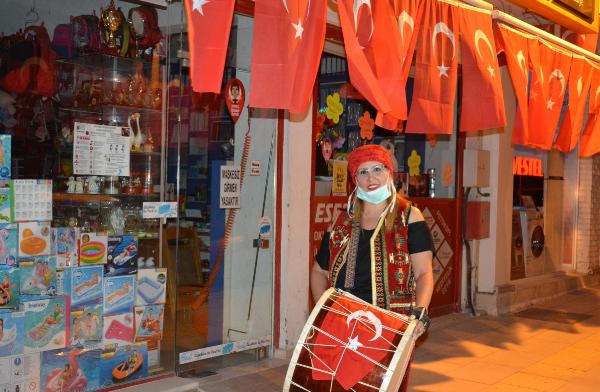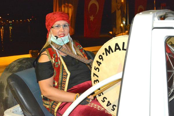 Mehmet ÇİL/DATÇA (Muğla), (DHA)- MUĞLA’nın Datça ilçesinde ramazan davulcusu Özlem İsar (43), 19 Mayıs Atatürk’ü Anma Gençlik ve Spor Bayramı’nda maniler yerine, marşlar söyleyerek vatandaşı sahura kaldırdı.