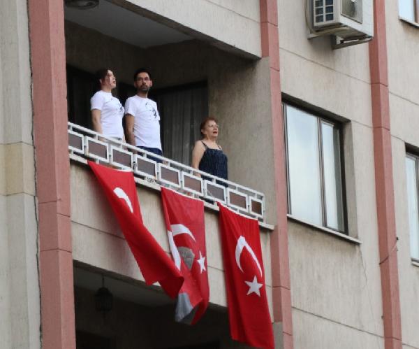 Ramazan ÇETİN/DENİZLİ, (DHA)- DENİZLİ’de, 19 Mayıs Atatürk’ü Anma, Gençlik ve Spor Bayramı kapsamında, saat 19.19’da Horoz heykelinin bulunduğu meydanda hoparlörden İstiklal Marşı çalındı. Evlerinin balkonunda ve meydanda olanlar, saygı duruşuna geçerek İstiklal Marşı’na eşlik etti.