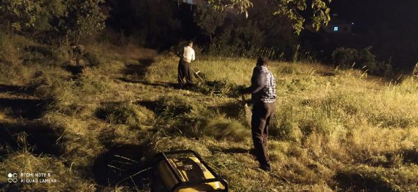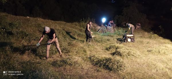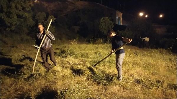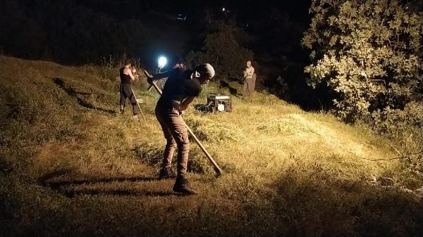 Abdullah KAYA/ŞEMDİNLİ (Hakkari), (DHA)- HAKKARİ’nin Derecik ilçesinde, ot biçimine başlandı. Çiftçiler, sıcak hava nedeniyle otları biçme işini gece yapıyor.
