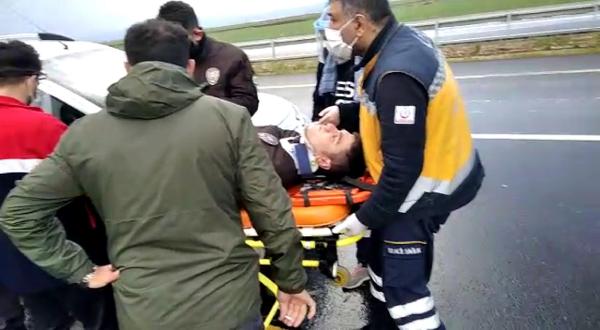 Dolu yağışıyla kayganlaşan yolda kaza: 5 bekçi yaralı