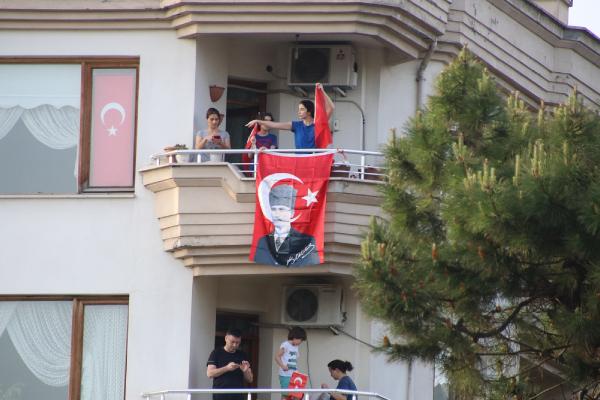 Tezcan SOLMAZ/DÜZCE, (DHA) – DÜZCE’de, 19 Mayıs Atatürk’ü Anma, Gençlik ve Spor Bayramı nedeniyle saat 19.19’da balkon ve pencerelere çıkan vatandaşlar İstiklal Marşı okudu.
