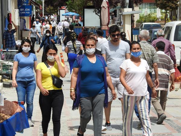 Hava sıcaklığının 32 derece ölçüldüğü Edirne’de, sıcak havayı fırsat bilen vatandaşlar kentin kalabalık caddelerinde yoğun olarak görülürken, Ulus Pazarı girişinde zaman zaman oluşan kalabalık, sosyal mesafe kuralına ihlal etti.