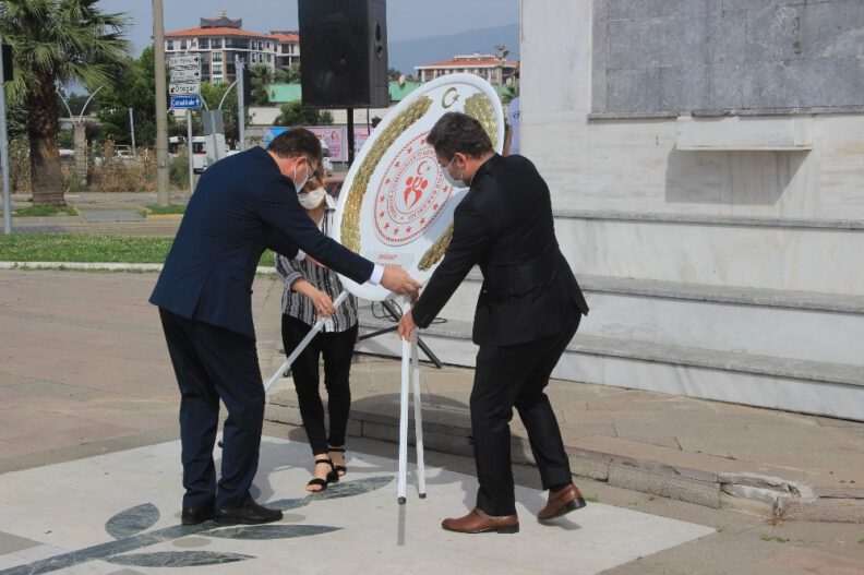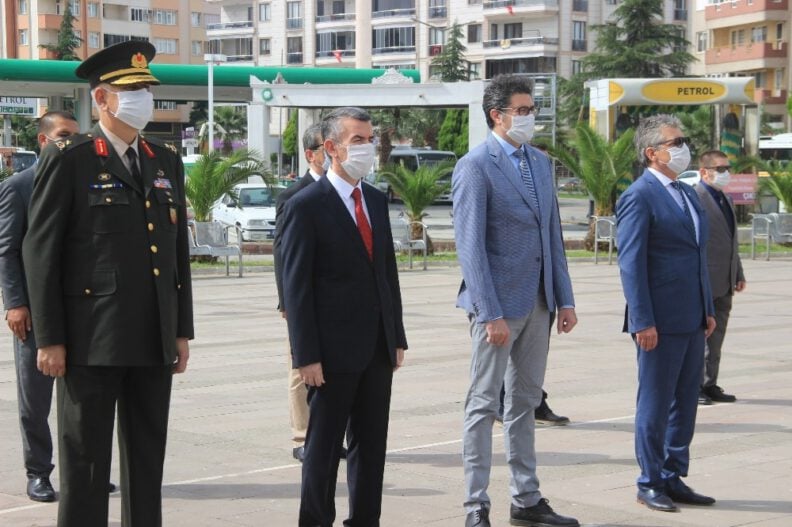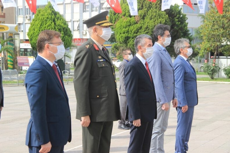 Balıkesir’in Edremit ilçesinde 19 Mayıs Atatürk’ü Anma ve Gençlik ve Spor Bayramı koronavirüs önlemleri kapsamında az katılımlı bir çelenk sunma töreniyle kutlandı.