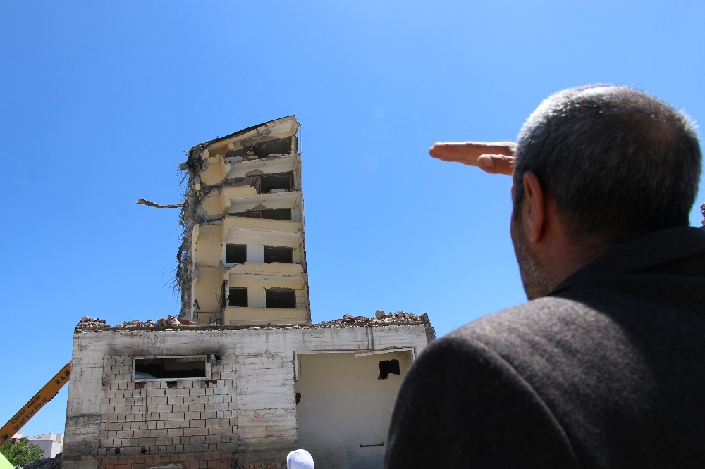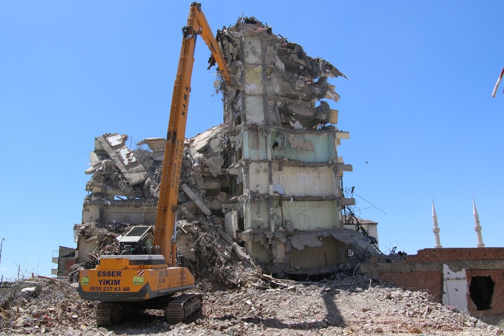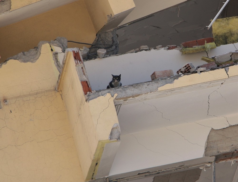 Elazığ’da depremde ağır hasar gören 7 katlı binanın yıkımı, binadaki kedi ve yavruların çıkartılması için 3 gün durduruldu.