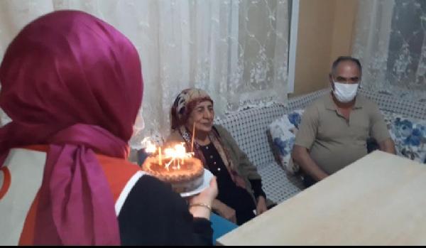 Kadir ÖZEN/İZMİR, (DHA)- İZMİR’in Bornova ilçesinde Kızılay ekipleri, bugüne kadar hiç doğum gününü kutlamayan Emine Berkil’e (82) yaş gününde sürpriz yaptı.