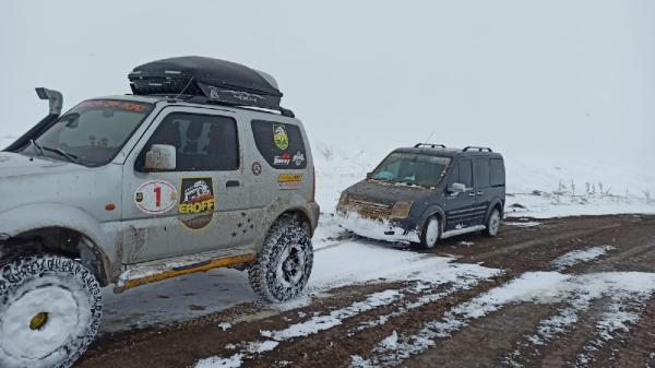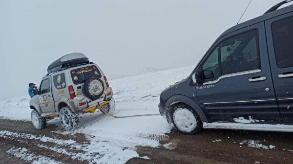 Kar yağışı nedeniyle Erzincan’ın Refahiye ilçesi Karadağ Mevkisinde araçlarıyla mahsur kalan vatandaşların yardımına Erzincan Off-road ekibi ile Vefa Sosyal Destek Grubu yetişti. Araçlar, Off-road araçları ile çekilerek, vatandaşlar kurtarıldı.
