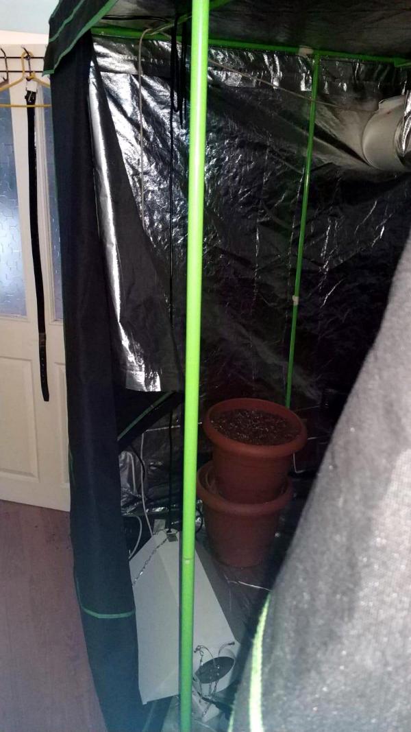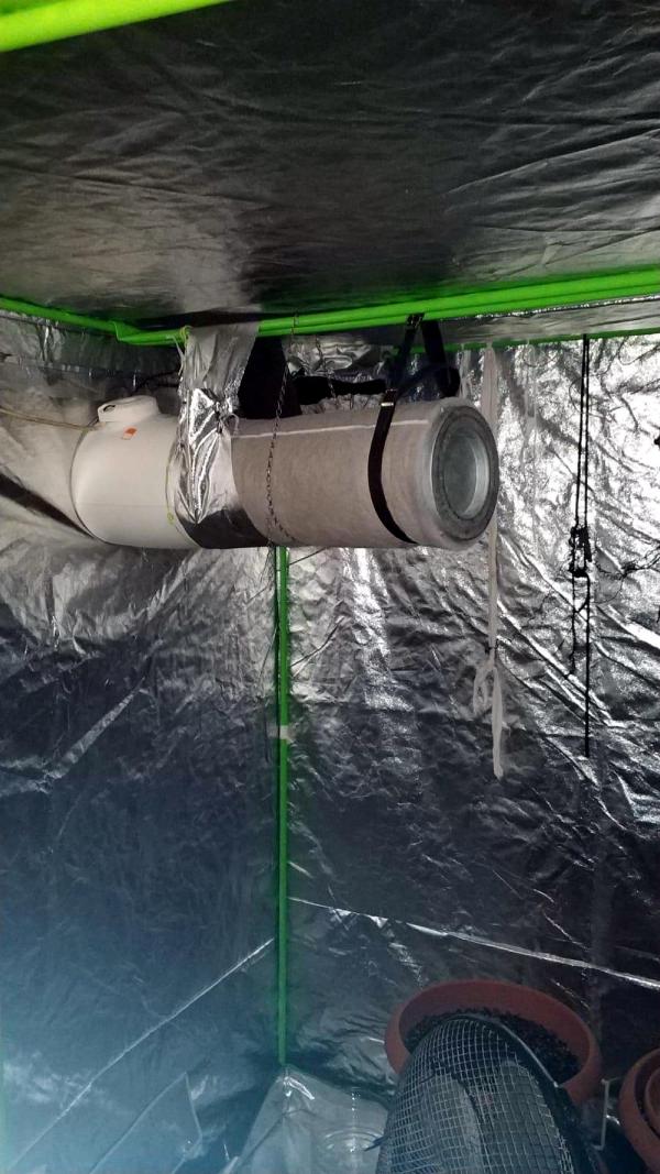 uyuşturucu üretmek için özel düzenekli çadır kurulduğunu belirledi. Saksılar içinde yetiştirilen uyuşturucuların koku yapmasını önlemek için özel koku giderici sistemi, karbon filtre, nem makinesi, vantilatör, sıvı gübre, ışık sistemi ve fan sisteminin kurulduğu ortaya çıkarıldı. Çadır içinde yapılan aramada, 100 gram satışa hazır esrar, 1 ruhsatsız av tüfeği, bu tüfeğe ait 2 şarjör ve 30 adet fişek, 1 hassas terazi, uyuşturucudan elde edilen 635 lira ele geçirildi.