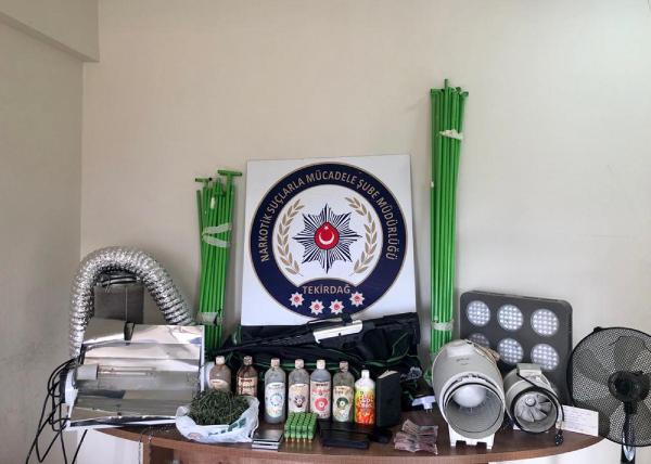 İl Emniyet Müdürlüğü Narkotik Suçlarla Mücadele Şube Müdürlüğü’ne bağlı Çorlu Narkotik Suçlarla Mücadele Grup Amirliği ekipleri, Muhittin Mahallesi’nde bir evde uyuşturucu yetiştirilip satıldığı ihbarı üzerine harekete geçti. Eve operasyon düzenleyen polis,