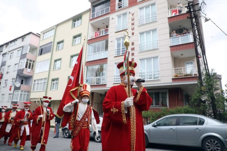 Eyüpsultan Belediyesi, 19 Mayıs Atatürk’ü Anma, Gençlik ve Spor Bayramı dolayısıyla mahallelerde mehter konserlerine tekrar başladı. “Moralimizi yüksek tutalım, tedbirlere uyarak bu süreci atlatalım” sloganıyla Eyüpsultan Belediyesi tarafından organize edilen mehter konseri, Nişanca, Defterdar, Topçular ve Düğmeciler mahallelerinde gerçekleşti. Konserde Eyüpsultan Belediyesi Mehteran Takımı, sokaklarda hareketli ve eğlenceli marşlar çaldı. Konsere mahalle sakinlerinin ilgisi yoğun olurken, evlerinden çıkamayan genç yaşlı tüm vatandaşlar evlerinin camlarından, balkonlarından konseri izleyerek el salladılar, çalınan parçalara alkışlarla eşlik ettiler.