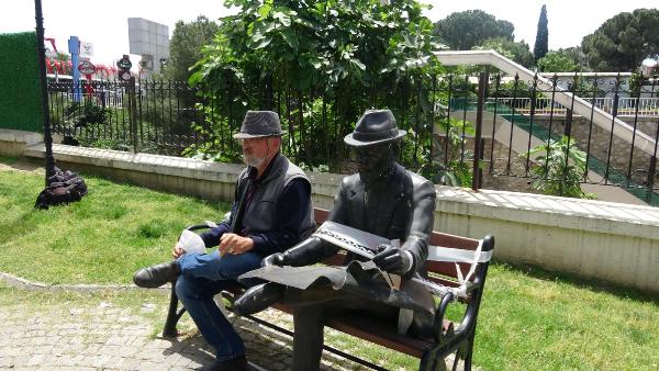 Gelip, geçerken heykelin yanında oturan insanları görmenin kendisini mutlu ettiğini de vurgulayan Kara, “Heykelimin yanına oturanlar adeta onunla muhabbet ediyor. Heykele gözlük takanlar, omzuna elini kolunu atanlar oluyor. Bol bol fotoğraf çektiriyorlar. Bu tabii ki bu çok hoş bir durum oluyor. Ama heykel artık ben olarak değil oturan bir varlıktır” dedi.