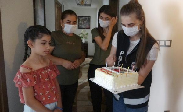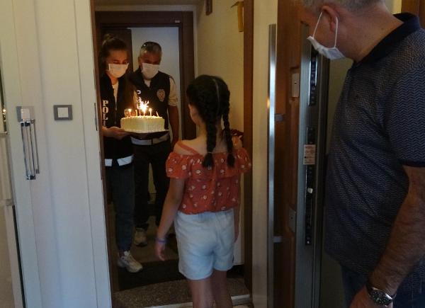 İlkokul 3’üncü sınıf öğrencisi olan Fatma Sena Şan, pastayla gelen polisleri görünce büyük mutluluk yaşadı. Polis memurlarıyla birlikte pastasını kesen Şan, “Polis abi ve ablama çok teşekkür ederim. Beni bu doğum günümde yalnız bırakmayarak çok mutlu ettiler” dedi.