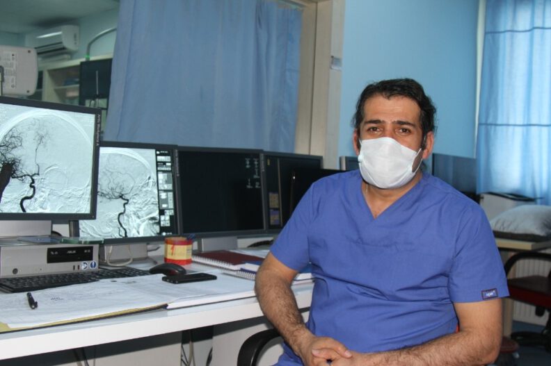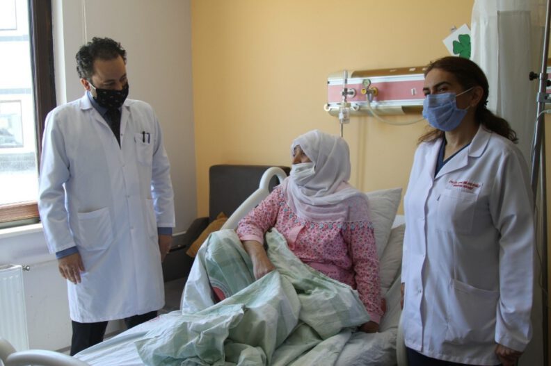 Van’da yaşayan 67 yaşındaki Nafiya Yurdagül, bir hafta önce sol kol ve bacakta güçsüzlük ve konuşamama rahatsızlığı yaşadı. Ambulansla YYÜ Dursun Odabaşı Tıp Merkezine kaldırılan Yurdagül’ün muayenesinde, felç geçirdiği ve beynin büyük bir damarında tıkanma olduğu tespit edildi. Bunun üzerine hasta, ’mekanik trombektomi’ adı verilen yöntemle kasıktan girilen küçük bir iğne ve kateterle beyinde tıkalı olan ana damara ulaşılarak, stent yardımıyla pıhtının çıkarılması ve söz konusu damarın tekrar işler hale getirilmesiyle yeniden sağlığına kavuşmanın mutluluğunu yaşadı.
