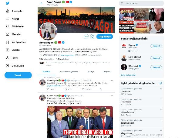 Ağrı’da, 31 Mart 2019’da yapılan yerel seçimlerde, yüzde 55,57’lik oy oranıyla belediye başkanlığına seçilen Savcı Sayan, sosyal medyayı aktif olarak kullanmasıyla dikkat çekiyor. Yaptığı hizmetleri, muhalefet ettiği konuları sosyal medya hesaplarından paylaşan Başkan Sayan’ın geniş bir takipçisi kitlesi var. Twitter’da 1,1 milyon, Instagram da ise 275 bin takipçisi olan Sayan’ın paylaşımları da büyük beğeni ve yorum alıyor.