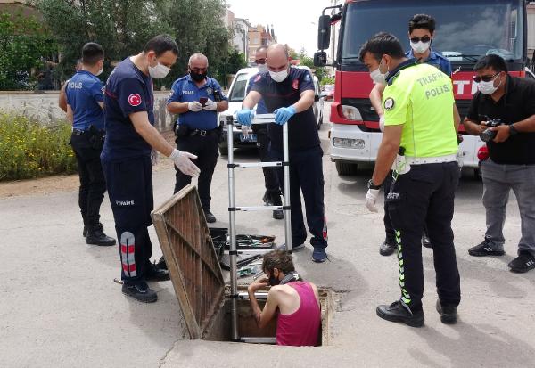 Olay, öğle saatlerinde Muratpaşa ilçesi Kızılarık Mahallesi 3834 Sokak’ta meydana geldi. Uyuşturucu madde bağımlısı Aziz G., karantina altındaki mahalleye ulaşabilmek için kanalizasyona girdi. Aziz G., karantina bölgesine 500 metre kala, kanalizasyonda mahsur kaldı. Yardım isteyen Aziz G.’in sesini duyanlar, durumu 112 Acil Çağrı Merkezi’ne bildirdi. İhbarın ardından adrese sağlık, itfaiye ve polis ekipleri sevk edildi. Aziz G., rögar kapağından merdiven yardımıyla çıkarıldı.