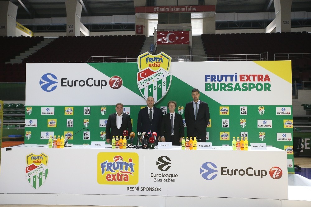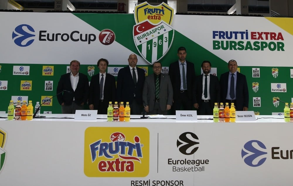 Frutti Extra Bursaspor bu yıl Avrupa’da Eurocup’ta Türkiye’yi temsil edecek. Tofaş Spor Salonu’nda düzenlenen basın toplantısında sponsorluk ve Eurocup ile bilgiler verildi. Basın toplantısı, Uludağ İçecek Yönetim Kurulu Başkan Yardımcısı Ömer Kızıl, Uludağ İçecek İcra Kurulu Başkanı Mete Öz, Frutti Extra Bursaspor Başkanı Sezer Sezgin, Frutti Extra Bursaspor Genel Menajeri Nedim Yücel’in katılımlarıyla gerçekleştirildi.