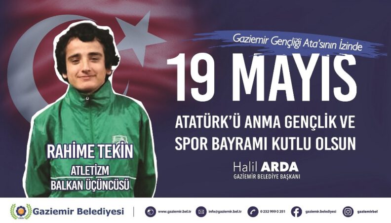 Turkcell Atletizm Süper Ligi’nde İzmir’i temsil eden tek kadın atletizm takımı olan Gaziemir Belediyesi Gençlik ve Spor Kulübü Kadın Atletizm Takımı, yıl boyunca elde ettikleri başarılarla 19 Mayıs kutlama afişlerinde yer almaya hak kazandı. Türkiye Büyükler Salon Atletizm Şampiyonası’nda 1500 ve 800 metrede Türkiye şampiyonluğu kazandıktan sonra Balkan Salon Atletizm Şampiyonası’nda Balkan üçüncüsü olan Rahime Tekin’in fotoğrafı da afişlerde kullanıldı.