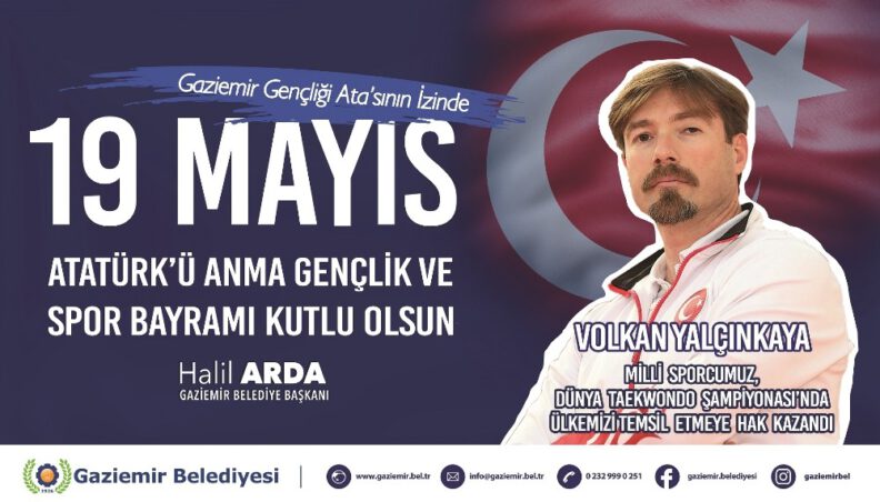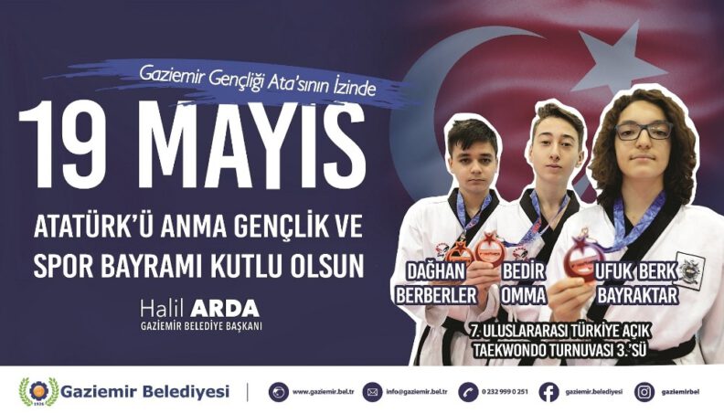 Avrupa şampiyonluğu ve dünya üçüncülüğü başta olmak üzere, birçok ulusal ve uluslararası şampiyonada derece kazanan Gaziemir Belediyesi Gençlik ve Spor Kulübü Taekwondo Antrenörü Volkan Yalçınkaya, öğrencileriyle birlikte kutlama afişlerinde yer alıyor. 7. Uluslararası Türkiye Açık Taekwondo Turnuvası’nda şampiyon olan milli sporcu Volkan Yalçınkaya, Dünya Taekwondo Şampiyonası’nda ay yıldızlı formayla ülkemizi temsil etmeye hak kazanmıştı. 7. Uluslararası Türkiye Açık Taekwondo Turnuvası’nda mücadele veren ve poomse kategorisi senkron yarışmasında 3’lü senkron takımı olarak Türkiye üçüncüsü olan Ufuk Berk Bayraktar, Dağhan Berberler ve Bedir Omma da kutlama görsellerinde gururla yerlerini aldı.