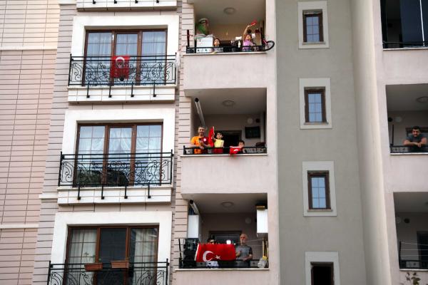 Öte yandan koronavirüs salgını nedeniyle evlerinden çıkamayanlar için bir mahalle sakini de balkonuna müzik sitemi kurdu. İstiklal Marşı’nın okunmasının ardından çalınan müzik eşliğinde vatandaşlar balkonlarında, şarkılara eşlik ederek bayramı kutladı.
