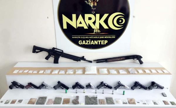 Gaziantep Emniyet Müdürlüğü Narkotik Suçlarla Mücadele Şube Müdürlüğü ekipleri, sokakta uyuşturucu satan kişilere yönelik yürüttüğü çalışmada şüphelilerin adreslerini belirledi. Çalışmasını tamamlayan polis, Vatan, Hacıbaba, Mithatpaşa, Beydilli, Güzelvadi, Yeditepe ve Güneykent mahallelerine operasyon düzenledi. Helikopter destekli ve özel harekat ekiplerinin de katıldığı operasyonda, 22 adres ve 8 araca eş zamanlı baskın düzenlendi. Eğitimli köpeklerin de kullanıldığı operasyonda; 1 kilo 360 gram metamfetamin, 400 gram eroin, 550 gram esrar, 250 gram bonzai, 620 uyuşturucu hap, 10 tabanca, 2 tüfek ile 6 hassas terazi ele geçirildi, 17 kişi ise gözaltına alındı.