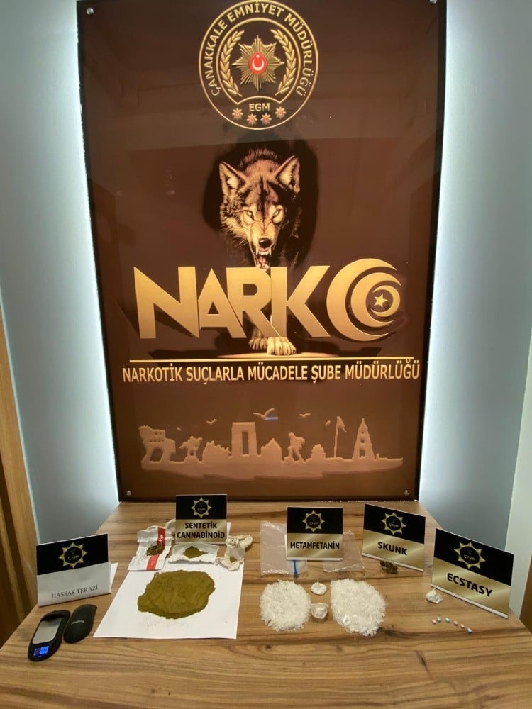 Olay dün akşam 19.00 sıralarında Çanakkale’nin Gelibolu ilçesinde meydana geldi. Bir istihbaratı değerlendiren Çanakkale İl Emniyet Müdürlüğü Narkotik Suçlarla Mücadele Şube Müdürlüğü, İstihbarat Şube Müdürlüğü ile şüpheli bir aracı durdurdu. Araç içerisinde yapılan aramada sağ kapı kolunun içerisine gizlenmiş şekilde; 4 parça halinde 105,28 gram Metamfetamin maddesi, 4 parça halinde 51,85 gram Sentetik Kannabinoid maddesi, 6 adet Extasy maddesi, 1,45 gram Skunk maddesi ve 1 adet bilgisayar mousesi şeklinde uyuşturucu madde tartımında kullanılan Hassas Terazi ele geçirildi.