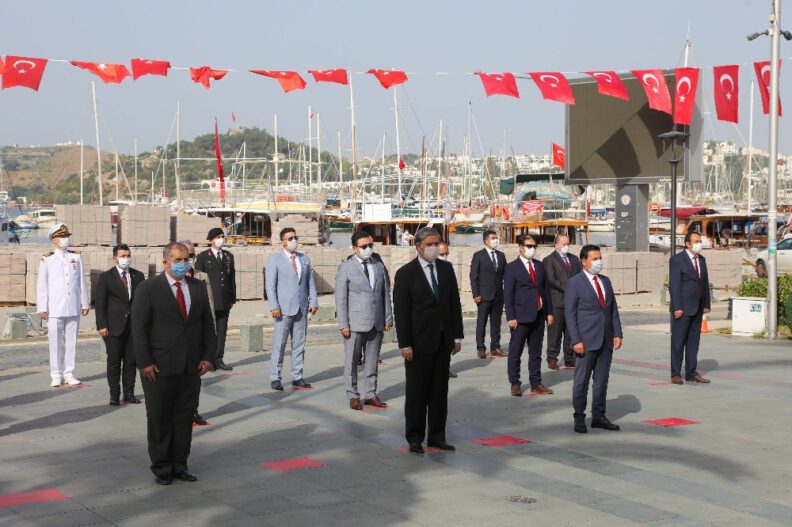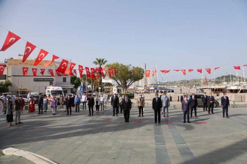 Belediye Meydanı’ndaki tören, İlçe Gençlik ve Spor Müdürlüğü çelenginin Atatürk Anıtı’na sunulmasının ardından saygı duruşu ve İstiklal Marşı’nın okunmasıyla devam etti. Törende kısa bir açıklama yapan Bodrum Kaymakamı Bekir Yılmaz şunları söyledi: