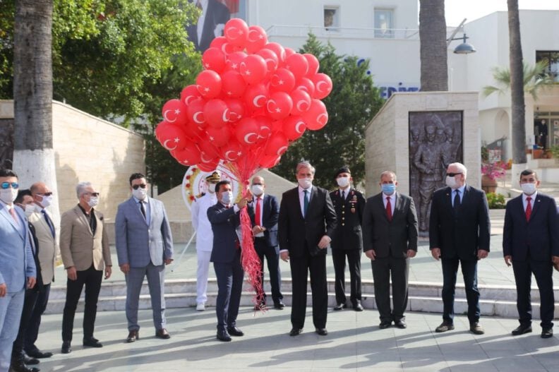 Törenin ardından Bodrum Kaymakamı Bekir Yılmaz, Bodrum Belediye Başkanı Ahmet Aras, İlçe Gençlik ve Spor Müdürü Fatih Uzunlulu ve ilçe protokolü, üzerinde Türk Bayrakları bulunan balonları gökyüzüne bıraktı. Törenin ardından ise belediye hoparlörlerinden Atatürk’ün sesi ve marşlar yayınlandı.