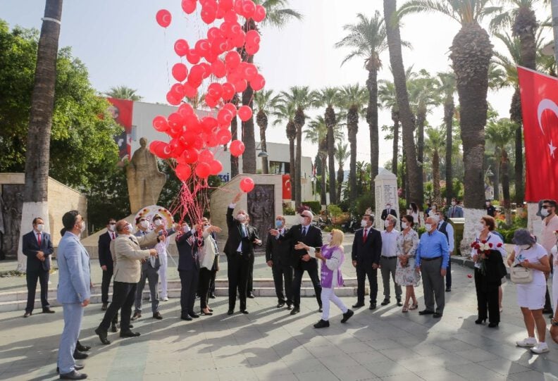 Törenin ardından Bodrum Kaymakamı Bekir Yılmaz, Bodrum Belediye Başkanı Ahmet Aras, İlçe Gençlik ve Spor Müdürü Fatih Uzunlulu ve ilçe protokolü, üzerinde Türk Bayrakları bulunan balonları gökyüzüne bıraktı. Törenin ardından ise belediye hoparlörlerinden Atatürk’ün sesi ve marşlar yayınlandı.